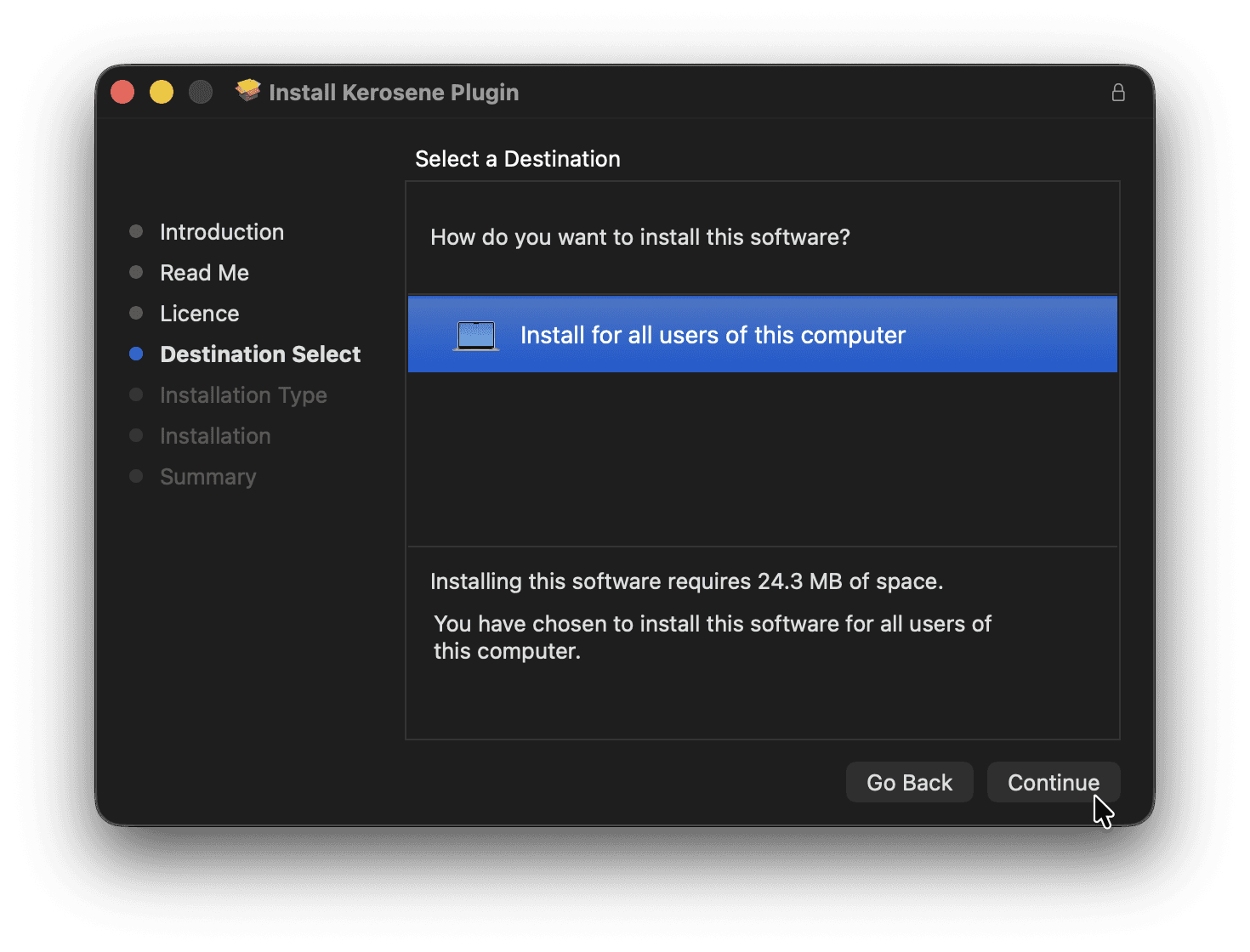 If installing for the first time or updating the plugin, you can download the latest version of the installer by clicking here or on the account icon in the top right of the Acedia Audio webpage, selecting 'products', then choosing Kerosene and the downloading the relevant installer for your operating system.